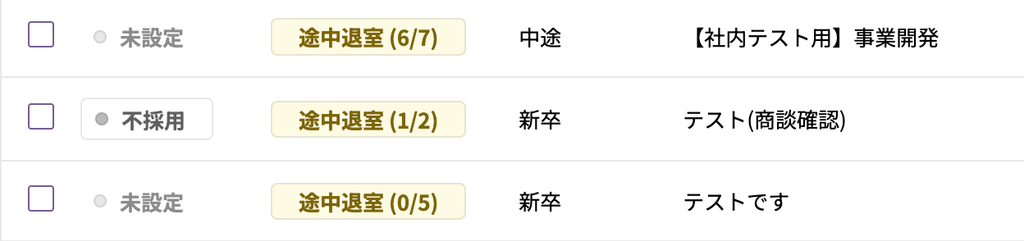 面接一覧画面で何問目の途中退室かがわかりやすくなりました。(黄色の部分)