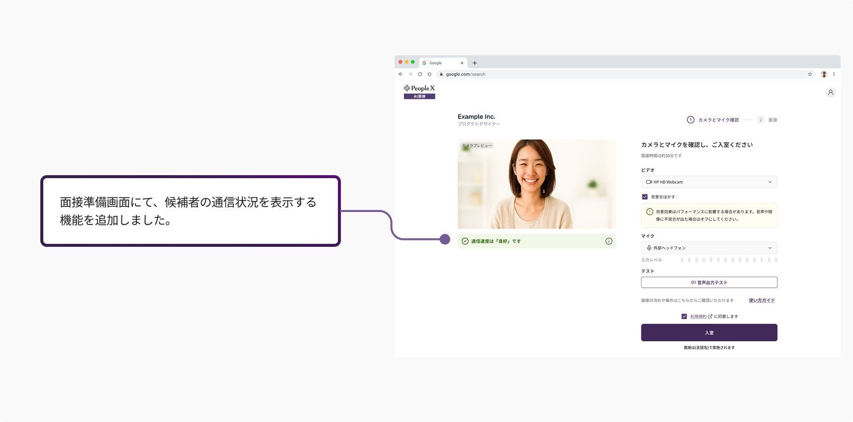 面接準備画面にて、候補者の通信状況を表示する機能を追加しました。