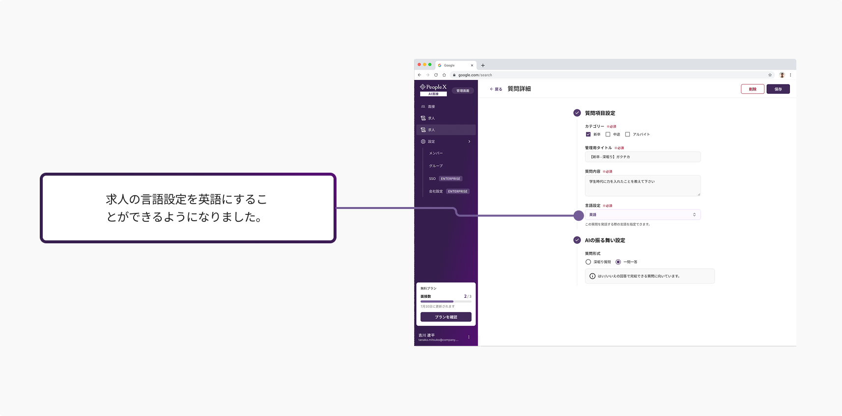 候補者が英語で面接を受けれるようになります。
