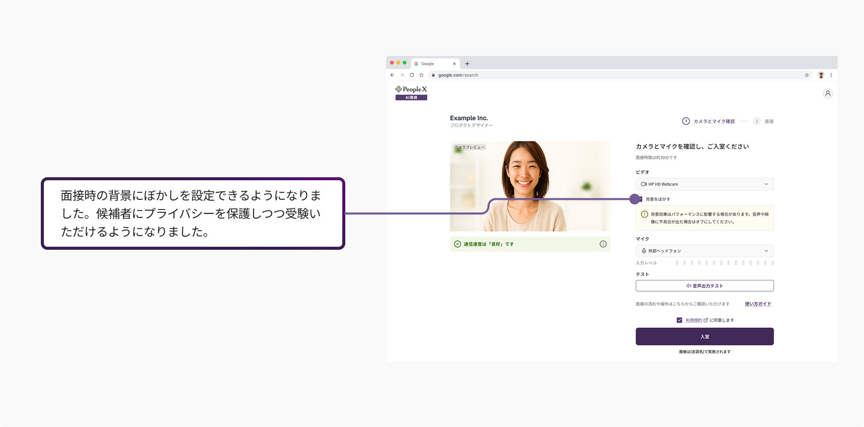 候補者にプライバシーを保護しつつ受験いただけるようになりました。