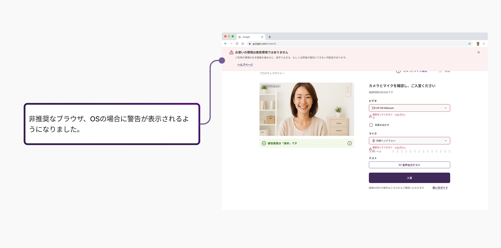 非推奨なブラウザ、OSの場合に警告が表示されるようになりました。
